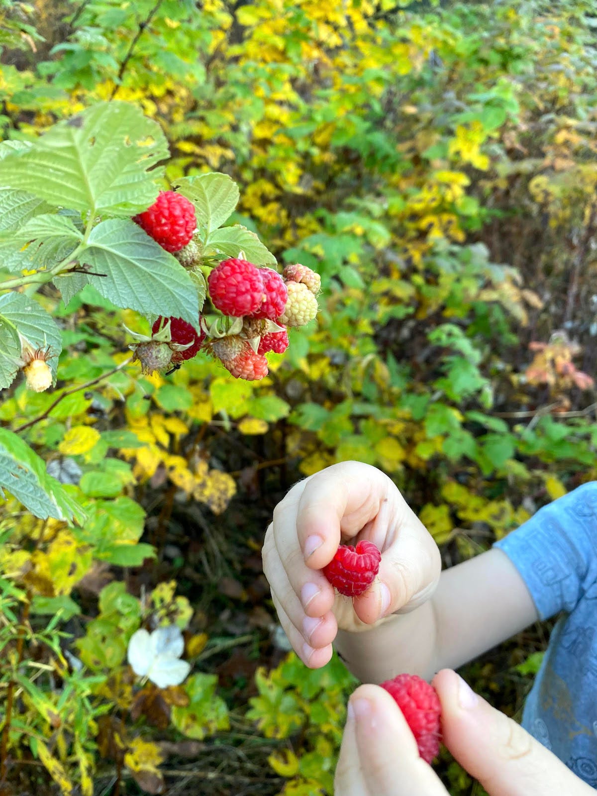 Autumn raspberries (also known as primocane raspberries) bear fruit this time of year on first year canes. (Summer raspeberries bear fruit on 2nd year canes that have overwintered.)