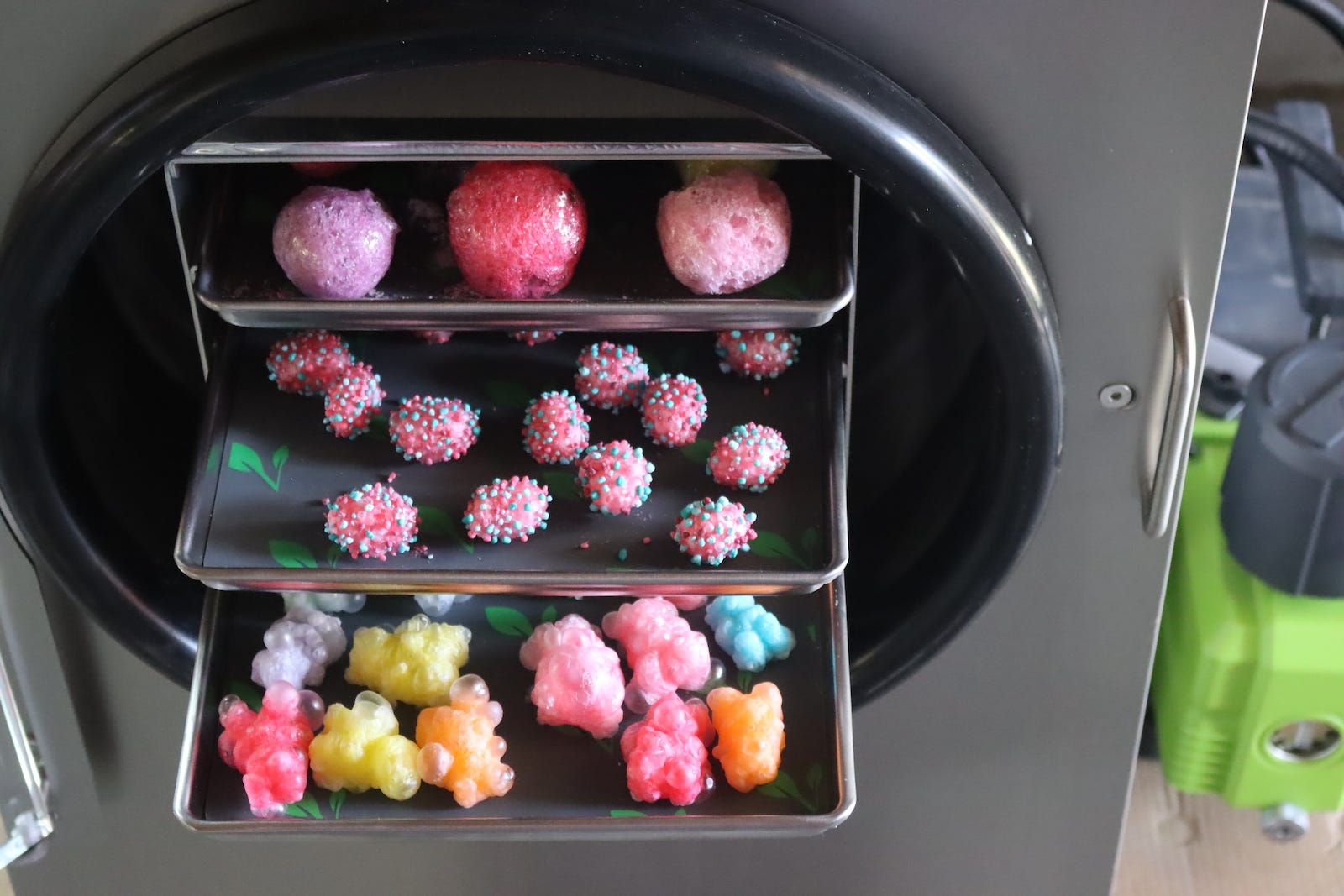 [Keep in mind…If you want to do this commercially you need to consider packaging; freeze dried candy absorbs water from the air and can soften if improperly packed. Think about things like vacuum sealers, desiccant pouches, etc. I won’t pretend that there’s not a learning curve here, so it’s not exactly plug and play…but it’s not that tricky either. It’s also not all that different than packing up other freeze dried food for long term storage.]