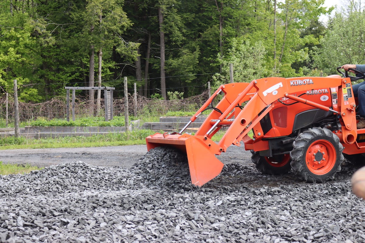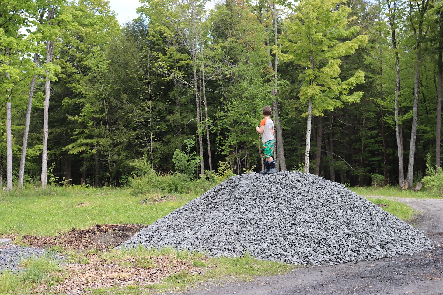 Thus, this is the season of gravel mountains for the kids to climb, and for us to spread.