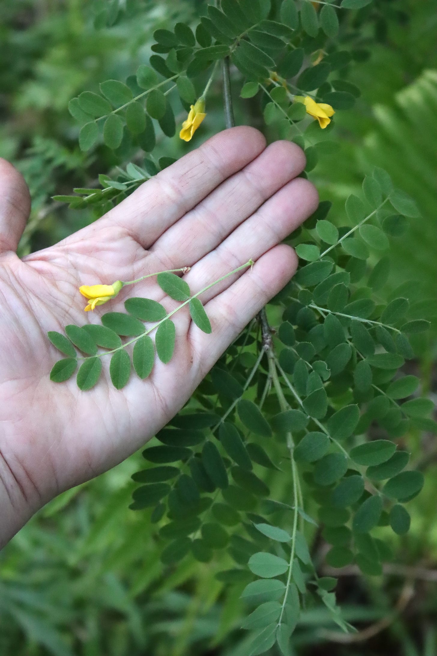 The picture below is Siberian pea shrub, which we planted in the chicken yard years ago and it’s flowering for the first time this year. It’s a nitrogen fixing shrub that produces edible pods that are high protein, and supposedly chickens love them. We’ll see, what the ladies think of their new menu item.
