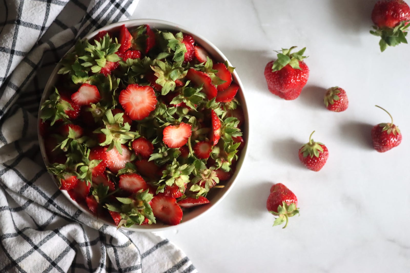 You can use strawberry tops in place of chopped strawberries, and they’re just as amazing. Greens and all, believe it or not.