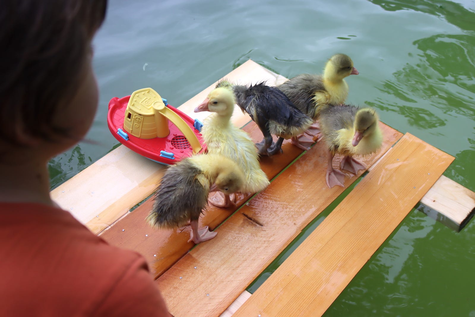 Geese are natural swimmers and their mothers lead them out to water when they’re only a few days old. The little fluffballs don’t have their full feather’s yet, and they’re not all the way waterproof, so they can become waterlogged and drown if they’re left too long. Their mother’s know that, and keep swim lessons short early on.