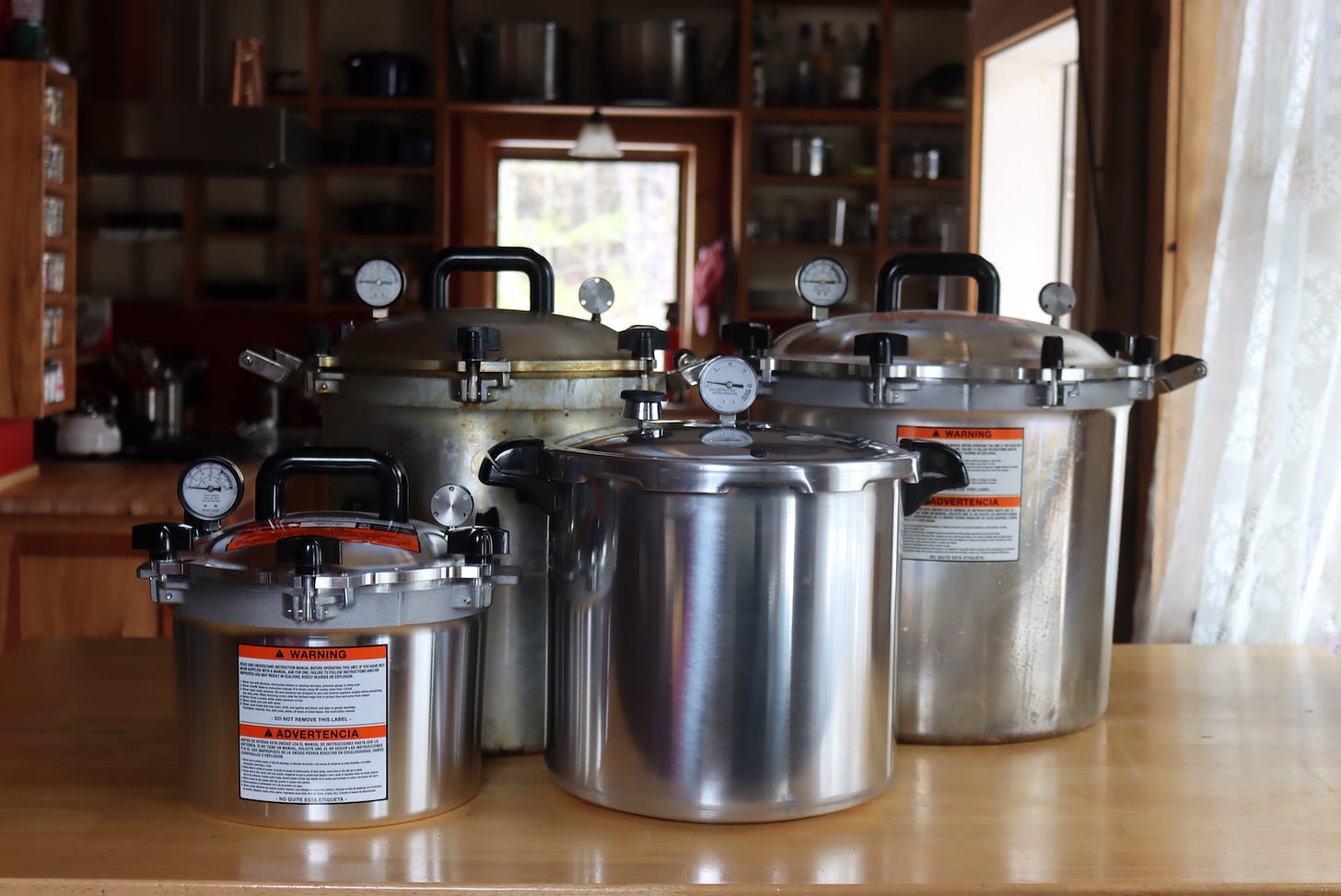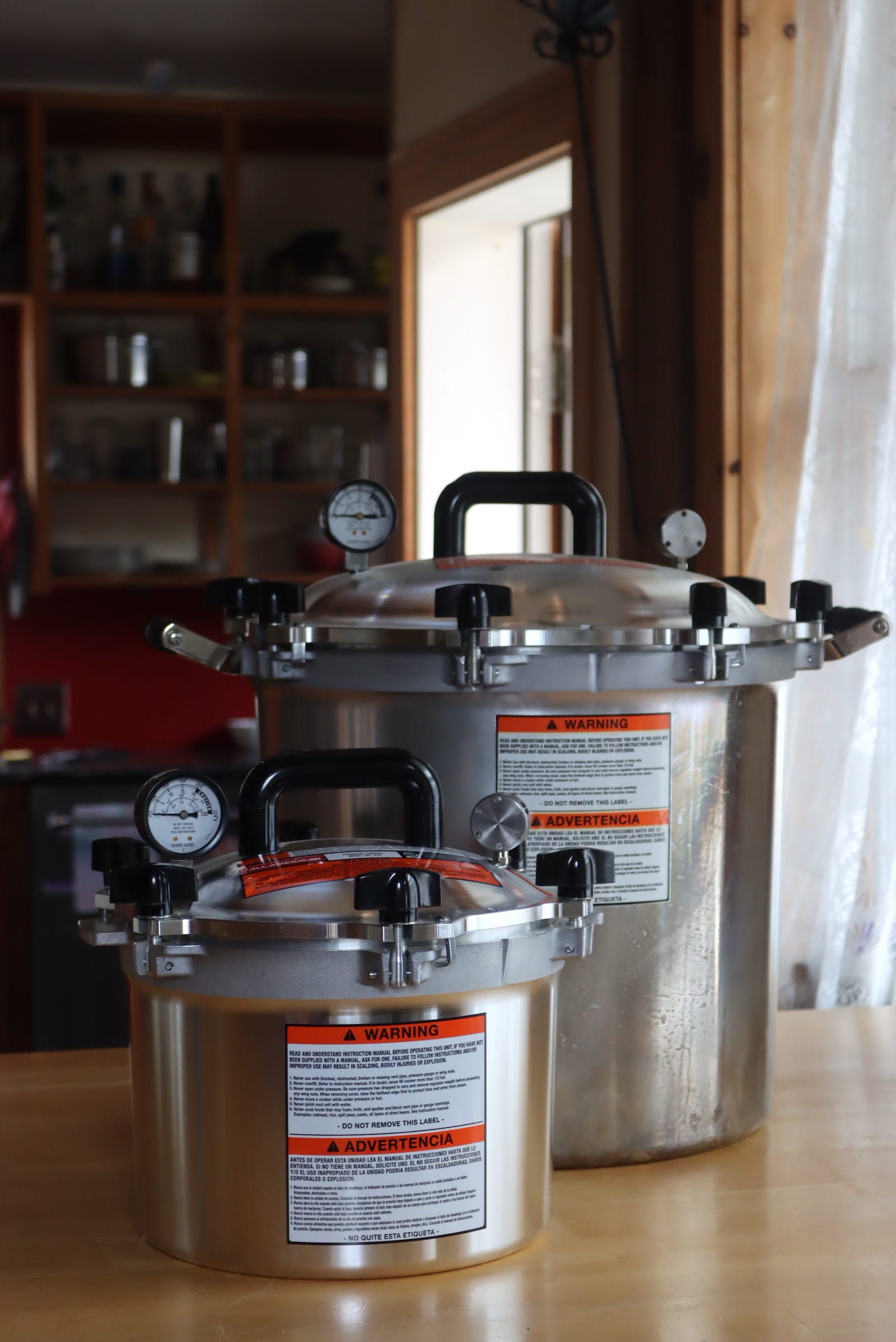 Weighted Gauge Canners (what I use) are much easier to use but a bit more expensive. They’re self-regulating, meaning that the weight keeps them at the right pressure and rocks to allow