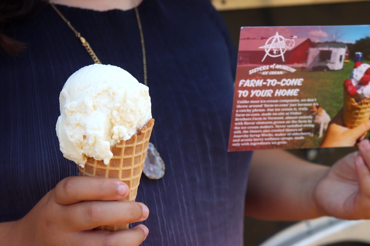 With ice cream on our mind, we made one last stop on a hot summer day at the Sisters of Anarchy food truck for a simple cone of handmade vanilla.