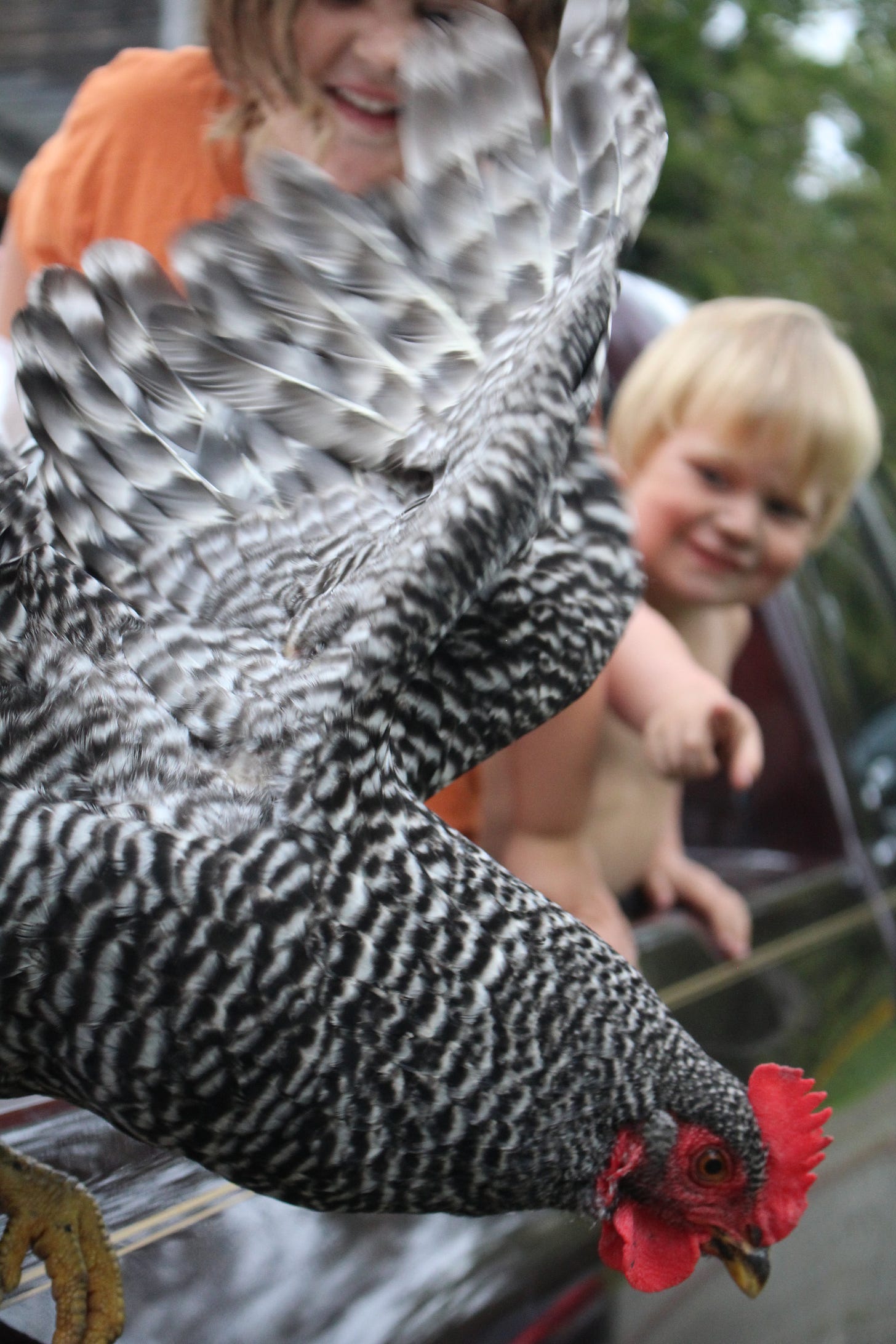 My daughter even had our rooster trained to do tricks for sweet summer berries.
